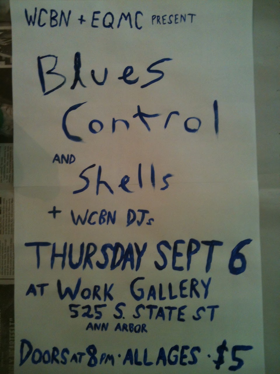It started off with the Blues Control and Shells show we did at the Work Gallery here in Ann Arbor, which was co-presented by WCBN and EQMC. Blues Control were really great, and the Shells set went pretty well too. Charles Slick did a light installation with Shells for the second time. Blues Control had projections that were really nice too. Work Gallery was a perfect space for this show!
